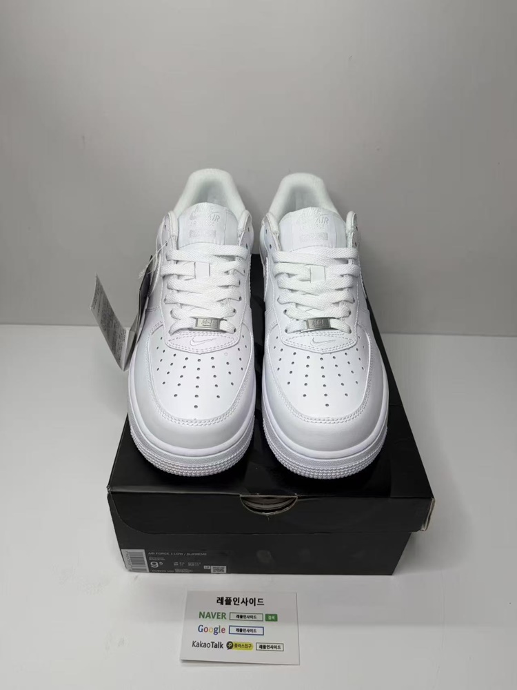 [NIKE] 나이키 x 슈프림 에어포스1 로우 화이트 CU9225-100 남녀공용 (OWF공장) 실사 디테일 상세 이미지!