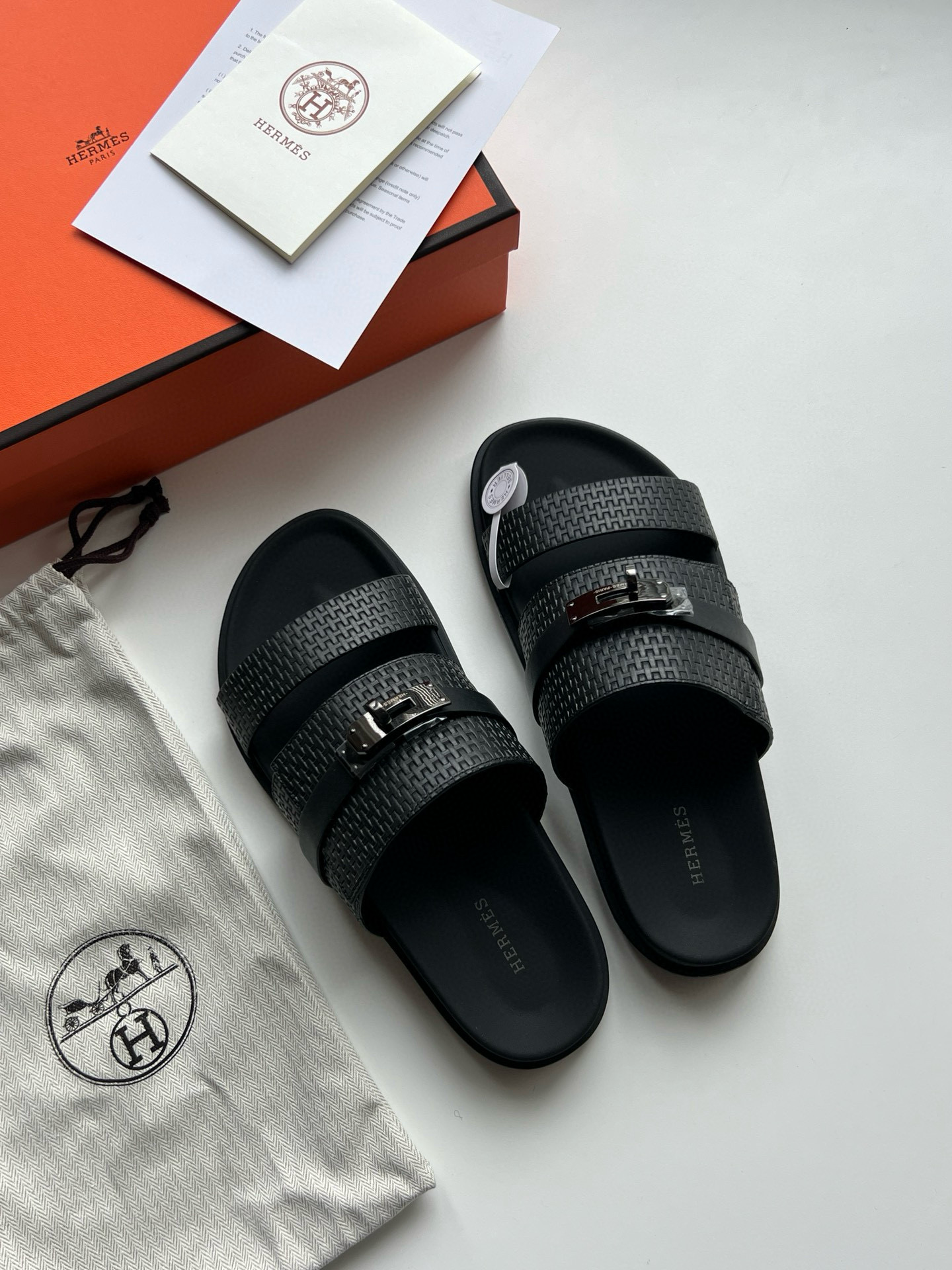 에르메스 시그니처 켈리 버클이 돋보이는 프리미엄 슬라이드 샌들입니다.