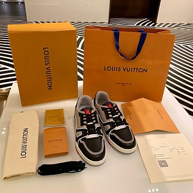 [LOUIS VUITTON] 19SS 루이비통 LV 트레이너 페일 그레이 누아쥬 스니커즈 (버질 아블로 디자인) 남성용 정사이즈보다 크게 나왔습니다. 정사이즈에서 반다운 해서 사이즈 선택 해주세요.